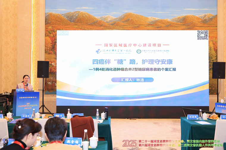 河北医科大学第一医院林洁护士长,北京大学人民医院石家庄医院刘云星护士长,河北省第八人民医院李宏更护士长及我院外三科朱坤艳主管护师、杨朝阳主管护师分别就多癌合并糖尿病、胃癌营养管理、无陪护营养支持、胃癌术后胃瘫及腹膜后巨大肉瘤的五个复杂案例进行了汇报。与会专家充分肯定了护理团队在疑难重症患者诊疗全流程中所发挥的专业支撑作用,不仅展现了精准的病情评估能力、科学的护理方案制定水平,更体现了对患者个体化需求的细致关注,为提升疑难重症患者护理质量提供了实践经验。
